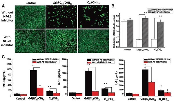 图14 Gd@C82(OH)22和C60(OH)22纳米颗粒激活巨噬细胞