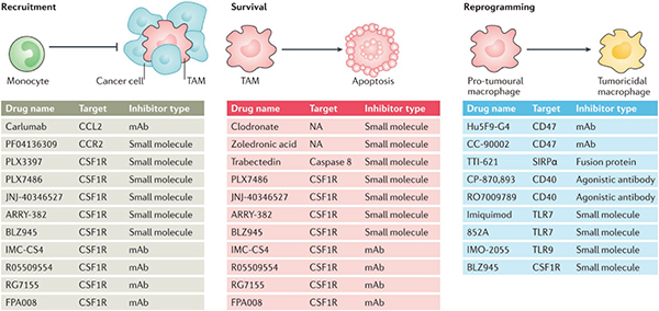 2. Luca Cassetta and Jeffrey W. Pollard. Targeting macrophages: therapeutic approaches in cancer. Nature reviews drug discovery, 2018, 17, 887-904.