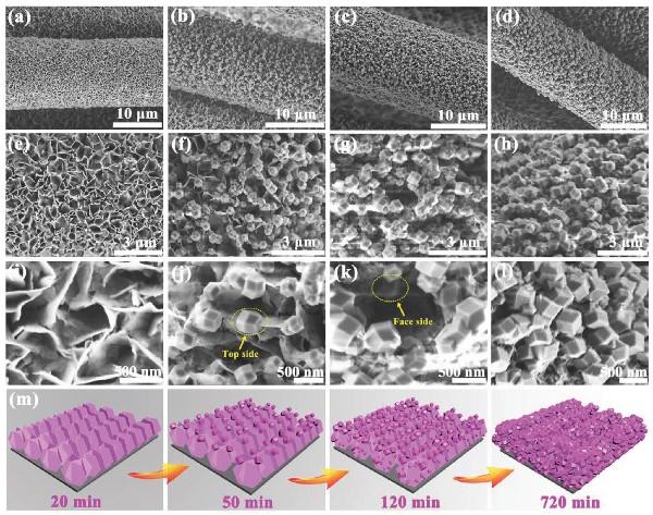 d,h,l) Co-LDH与2-MeIM配位720 min后的FESEM图像;