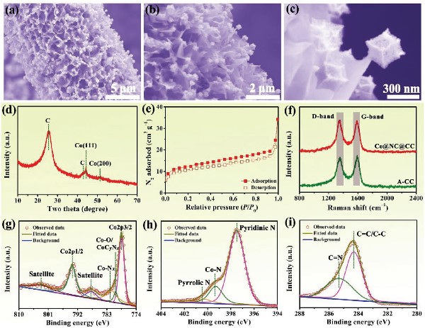 g-i) A-S-50复合材料的高分辨Co 2p、N 1s和C 1s XPS光谱。