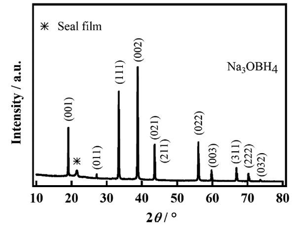 图1:已标注Miller指数的合成Na3OBH4的XRD图谱。