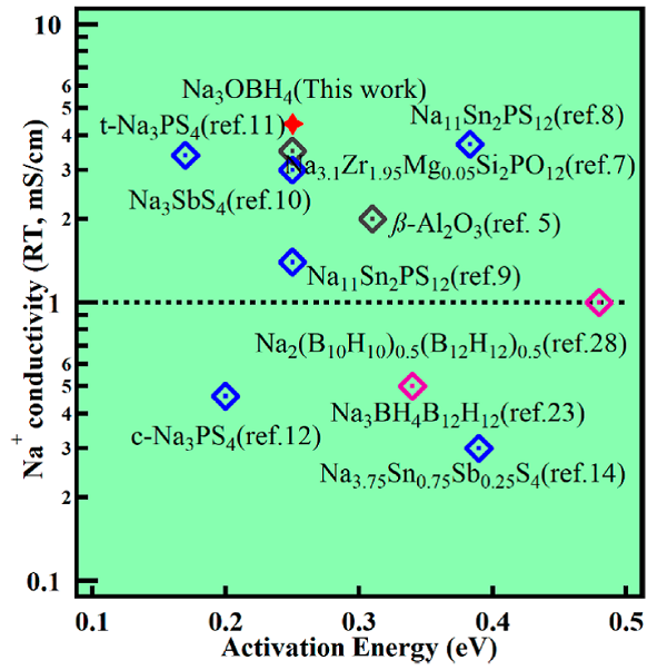 图4:一系列钠离子离子导体的离子电导率和活化能。