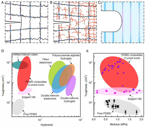 图2-具有不同网络结构的可拉伸材料的韧性和滞后性
