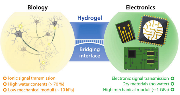 图4-水凝胶可以在生物学和电子学之间架起桥梁,为生物电子学的应用提供广阔前景