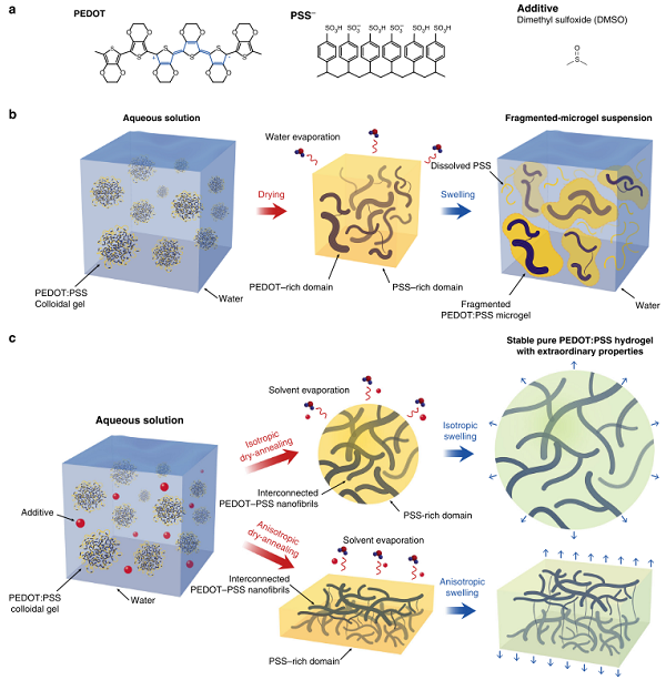 6.Lu, B.; Yuk, H.; Lin, S.; Jian, N.; Qu, K.; Xu, J.; Zhao, X., Pure PEDOT:PSS hydrogels. Nature communications 2019,10(1), 1043.