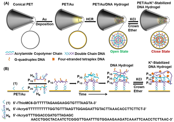图9-离子通道制备过程以及DNA水凝胶网络形成和过渡过程示意图