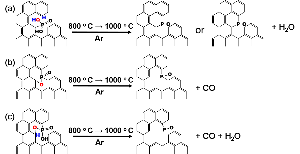 图7、碳晶格中亚稳态磷构型(CX-P-O,X<3)的可能生成机制