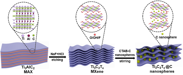 图1 Ti3C2Tx@C纳米球的制备示意图