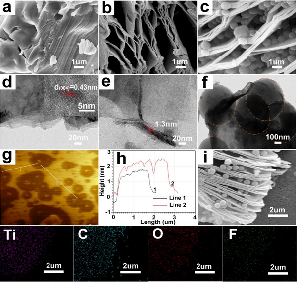 图2 三明治结构Ti3C2Tx@C正极材料的形貌、结构、成分表征
