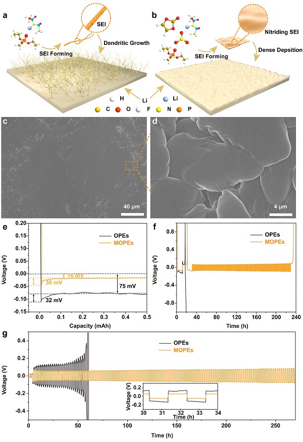 图1 OPEs/MOPEs(氮修饰的OPEs)与锂金属负极的兼容性