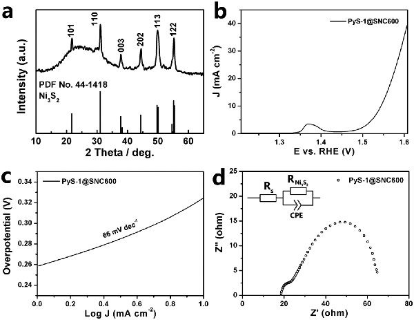 a) 完全硫化产物PyS-1@SNC600的XRD图谱;