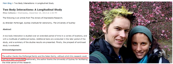 镜头转到澳大利亚,在悉尼大学攻读物理学相关专业博士研究生Brendan McMonigal向他交往了七年的女友Christie Nelan求婚时,单膝跪地,掏出的不是一枚戒指,而是一份物理学术论文。What?什么操作?McMoniga在这篇名为Two Body Interactions: A Longitudinal Study的专业论文中以专业用语回顾了两人一起经历的风雨,并展望未来幸福的婚后生活,还充满期待的绘制了一张“幸福指数”图表。