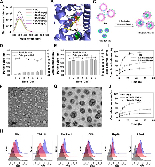 (C)Pt(IV)HSA NPs被包封到Rex中的示意图;