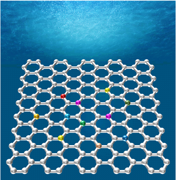 今天以杂原子掺杂的石墨烯应用于电催化析氧(OER)为例,介绍一下PPT制作石墨烯相关图形的方法。主要包括PPT制作杂原子掺杂的石墨烯和PPT处理图片两个部分。最终效果如下图: