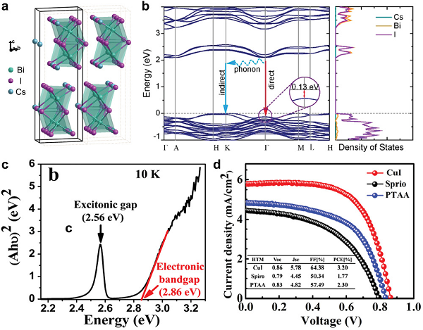(d)基于Cs3Bi2I9太阳能电池的J-V曲线。