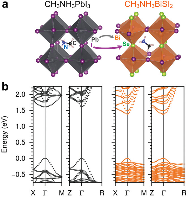 铅基卤化物钙钛矿太阳能电池因其优异的光电性能和低制作成本(低门槛)而成为当今研究热点。然而,其欠佳的稳定性和铅的毒性,使其商业化面临挑战。因此,寻找无毒、稳定、高效的钙钛矿型太阳能电池材料成了又一研究热点。然而,在太阳能电池应用方面,目前所得的“无铅”钙钛矿皆无法与铅基钙钛矿相媲美。