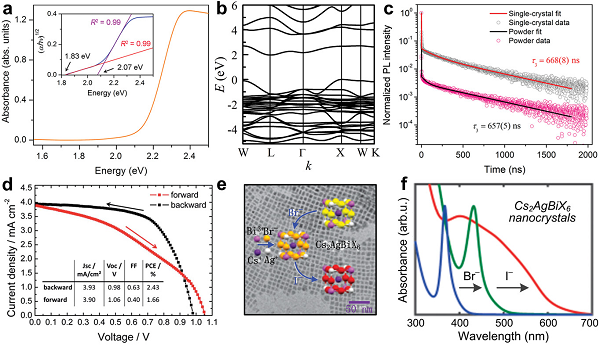 (f)Cs2AgBiX6纳米晶体的吸收光谱。