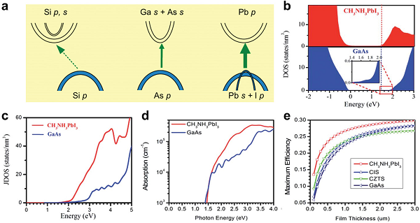 (c)MAPbI3和GaAs的联合态密度示意图。