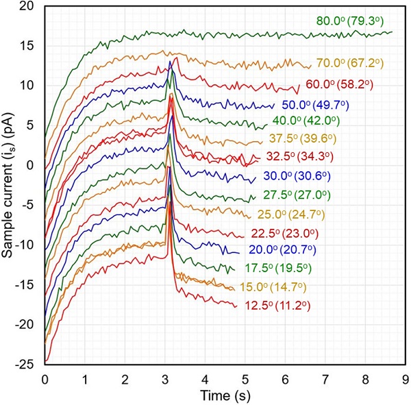 从FEBID期间收集的与时间相关的样本电流曲线中解析分段角度变化。