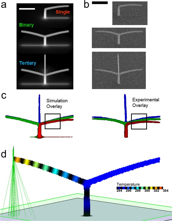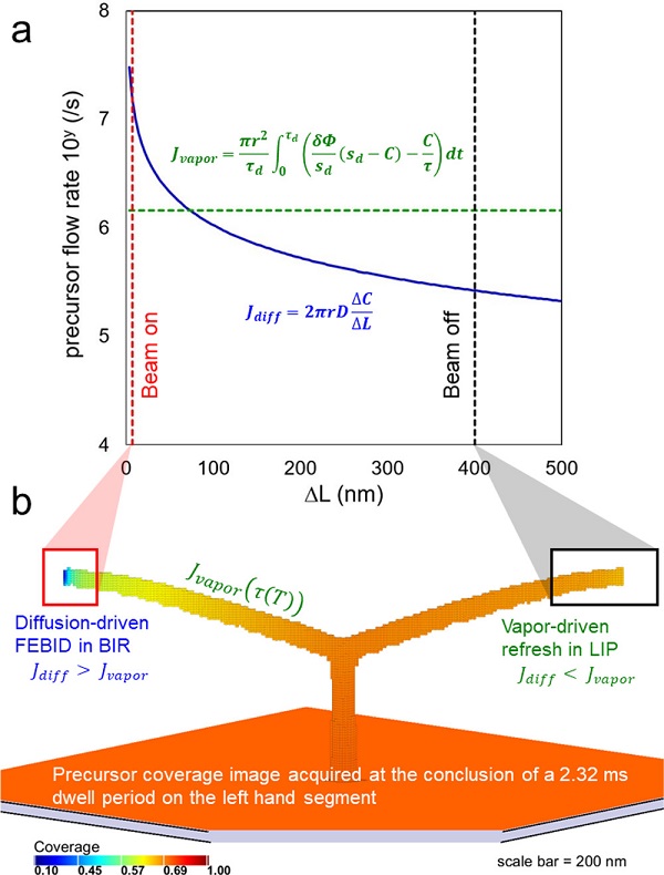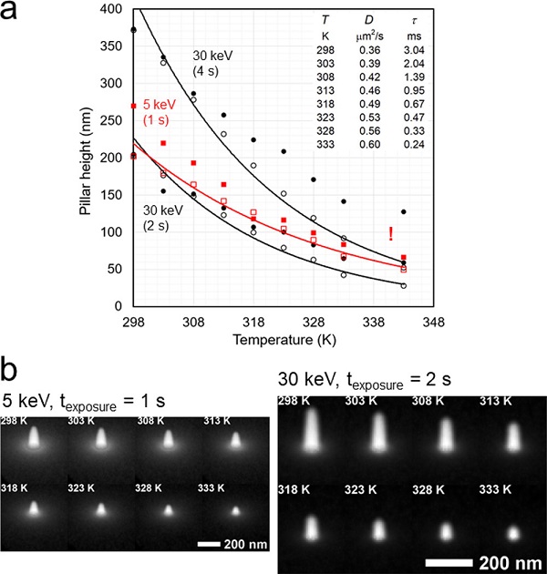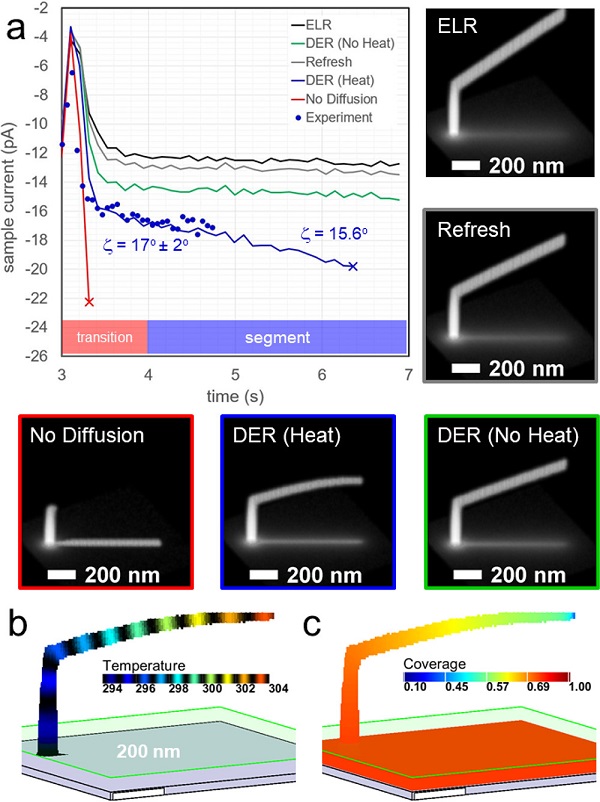 利用温度控制的FEBID实验证实3D FEBID模拟表明的电子束加热的影响。