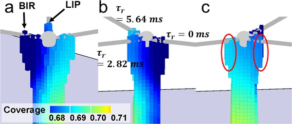 从同一时刻的几个成像角度观察,在分段成核期间第三支沉积物上的前驱体表面覆盖。