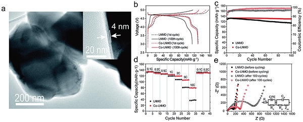 图四、对LNMO和Co3(PO4)2-LNMO的性能测试