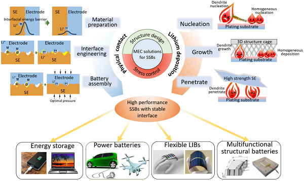 图3.电-力-化耦合界面改进方法(结构设计,应力调控)及固态锂金属电池应用前景