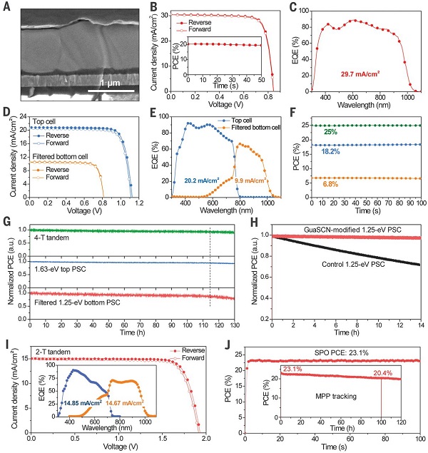 图4 低带隙钙钛矿单结太阳能电池以及叠层太阳能电池