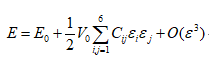 其中V0为材料晶胞不受外力时的体积,Cij为弹性常量矩阵元,εi为应力。如果一个材料的是稳定的,得到的弹性能E一定大于0。这样就可以得到材料的弹性稳定性条件:矩阵C是正定的;矩阵C的所有本征值是正的;矩阵C的所有顺序主子式是正的;矩阵C的任意子式都是正的。因此,不同晶系材料的弹性常量矩阵元需要满足不同的条件,具体可查看文献“Necessary and sufficient elastic stability conditions in various crystal systems”[[4]]。
