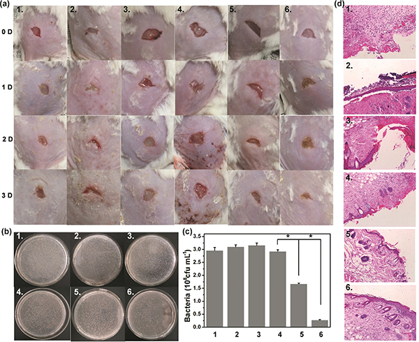 (a) 不同时间下金黄色葡萄球菌感染小鼠伤口的照片;