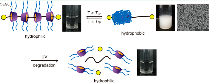 图1 温度敏感型环糊精聚轮烷及其光控降解行为