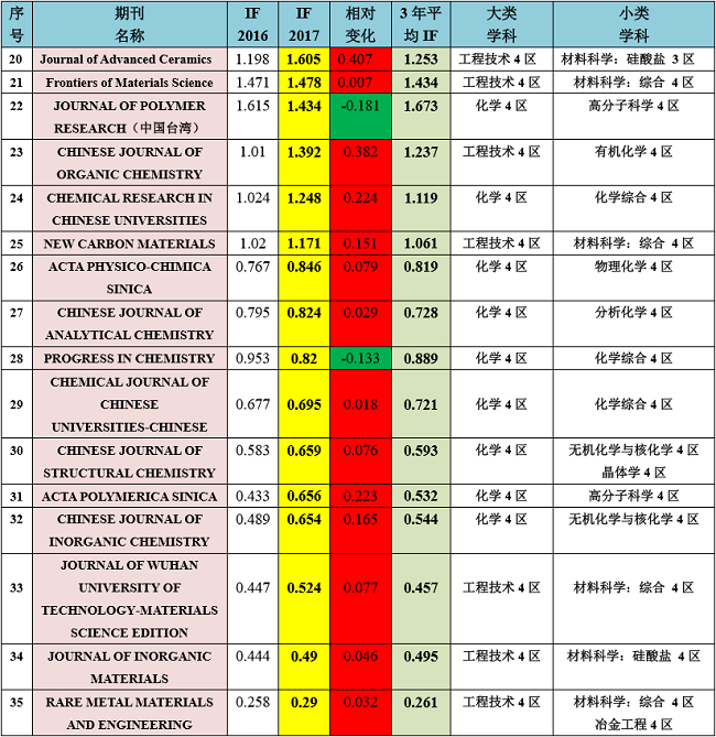 但是相对来说,最近几年国产的SCI期刊发展趋势是非常亮眼的,其中不乏一些TOP期刊。由于能力有限,下面简单介绍一下笔者整理的(按照影响因子高低排序))国产有关化学、材料类相关的35本SCI期刊,其中也不乏一些高校主办的被SCI收录的期刊。