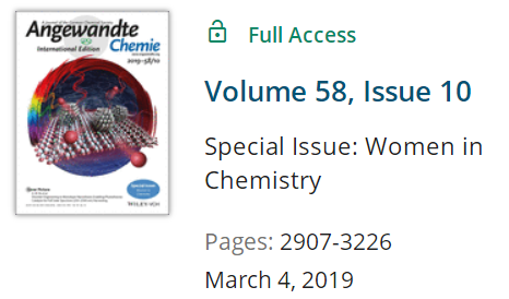 关于“女性研究者对领域的贡献”这个主题,Angew. Chem.分别在2011年的volume 50,issue 4和2019年的volume 58,issue 10以“women in chemistry”为题发过两次special issue。这些special issue介绍了女性科学家在材料研究领域的贡献。
