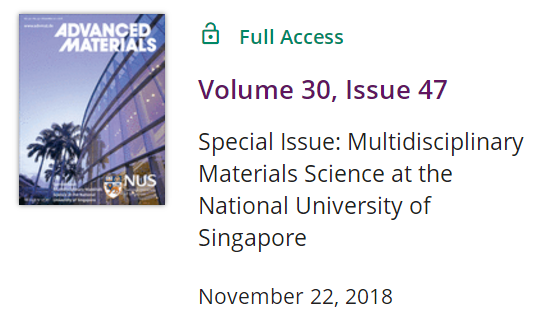 比如Adv. Mater.在2018年的volume 30,issue47中以“Multidisciplinary Materials Science at the National University of Singapore”为主题介绍了新加坡国立大学的功能性无机,有机和聚合物纳米材料的工程学多学科,在生物医学,可穿戴电子学,光子学,能源和环境可持续性等方面的应用。