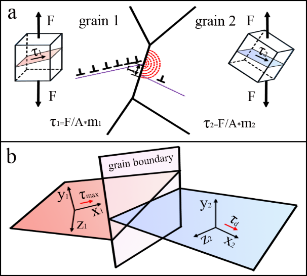 重庆大学信运昌教授课题组在先前研究中提出了分析织构影响k的新参数及其计算方法(Acta Materialia 128 (2017) 313-326)。在此基础上,该课题组将晶体学取向影响k的作用分为内应力作用和外应力作用(如图1所示),并将两种作用在细晶强化的位错塞积模型中进行准确表达,发展了一个计算k值的新的方程: