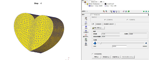 这里我们没有什么特殊要求就按系统自动选择的划分32000个网格,把我们的小心心分成了32000块,心碎的感觉啊。然后将其设为塑性体,并在材料库中选择将它定义为一种材料,我们这里选择了一种冷成型铝合金,所以到时候温度选择室温就OK了。然后我们加入上下两个砖头: