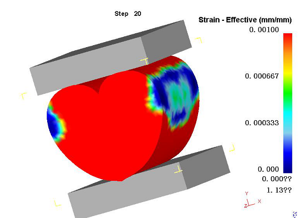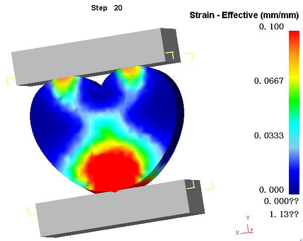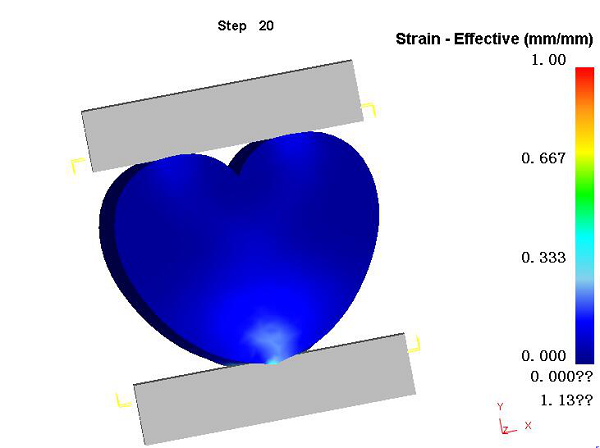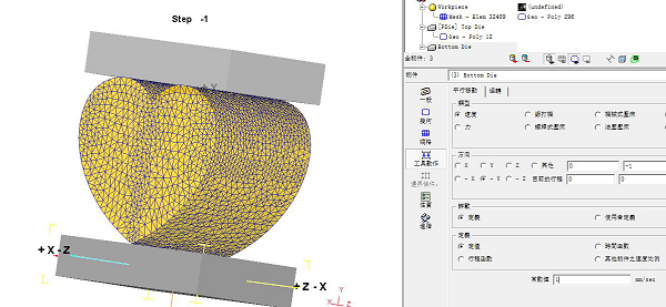 很多人要问了,那两个砖头是干什么的?这里笔者就要解释解释了,表白的这么多,哪个是真心哪个是假意一般也不好判断啊,于是笔者设想把这颗炽热的心放在两个砖头中间挤一挤,在模拟软件里看看有什么效果。那么操作流程来了(此刻单身狗也可以松一口气,因为下面的内容对于模拟小白来说也算个操作入门)。首先单击“File→New Problem”,选择“DEFORM-3D pre-processor”,输入文件名(随便起,但是不得使用中文),创建新任务进入前处理界面。然后我们首先导入受力件(就是小心心),并点Mesh对其进行网格划分,如下图所示: