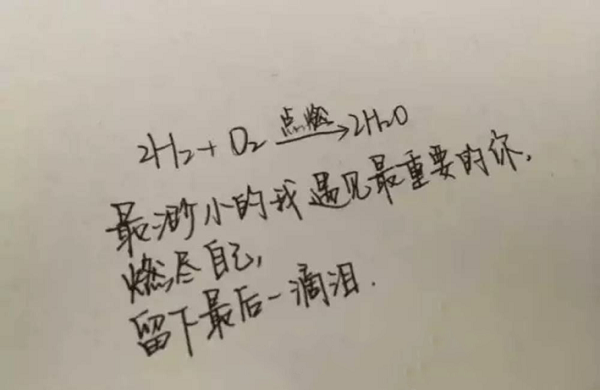 作为材料人,咱也没艺术生那个手艺,也没体育生那个体力,更不会程序员敲的那一行行代码,整天与试剂和仪器为伴,总想发挥点它们更多的余地,冥思苦想想起了蜡烛总是点亮自己照亮别人,氧气在化学里不也是点谁谁着吗,于是乎就有了这样的表白:
