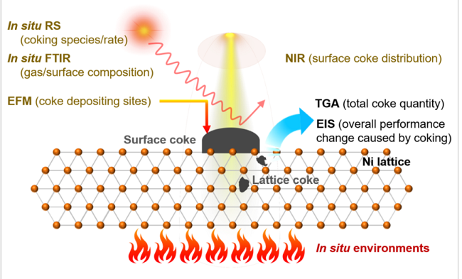 图2. Ni/YSZ积碳过程动态原位表征技术和手段
