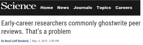 2、Early-career researchers commonly ghostwrite peer reviews. That’s a problem. Science Careers, May. 6, 2019.