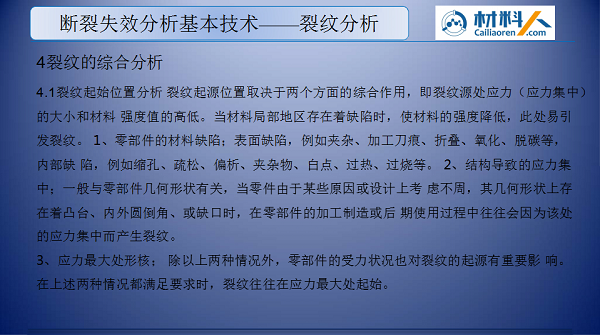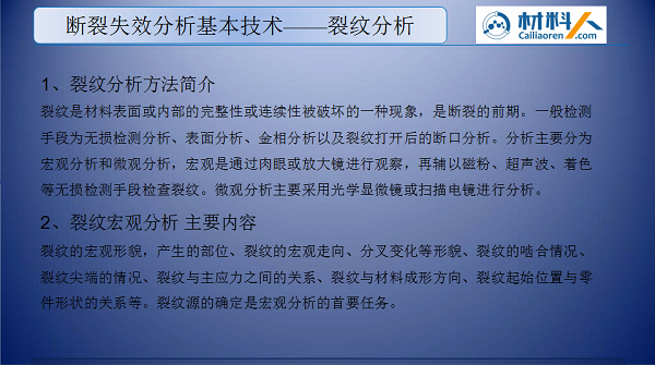 金属断裂失效分析基本技术——裂纹分析youyoucao2019-05-23干货10.92K金属零件中不可避免会存在各种微裂纹。在一定的条件下,裂纹可能逐渐扩展并导致工件断裂失效。下面为大家介绍裂纹分析的基本方法和技能。 (本文内容节选自材料人金属零部件断裂失效分析系列线上讲座。) 相关讲座 想要获取更多更全面的失效分析方面的内容,可以下载材料人APP,搜索“失效”观看失效分析基础课程。课程有关问题也可咨询微信客服qingcaikefu。 扫码下载材料人APP 未经允许不得转载:材料牛 » 金属断裂失效分析基本技术——裂纹分析
