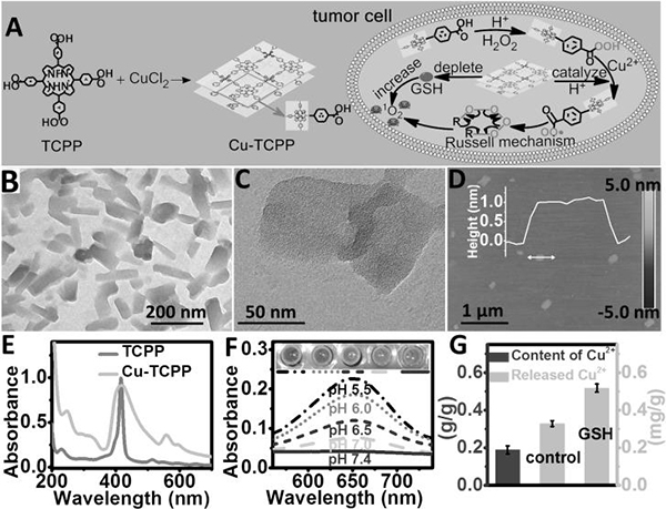 (A) Cu-TCPP纳米片的合成方案和治疗机理;