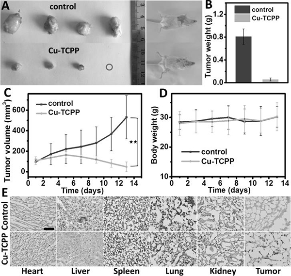 图5 Cu-TCPP纳米片的体内肿瘤治疗效果