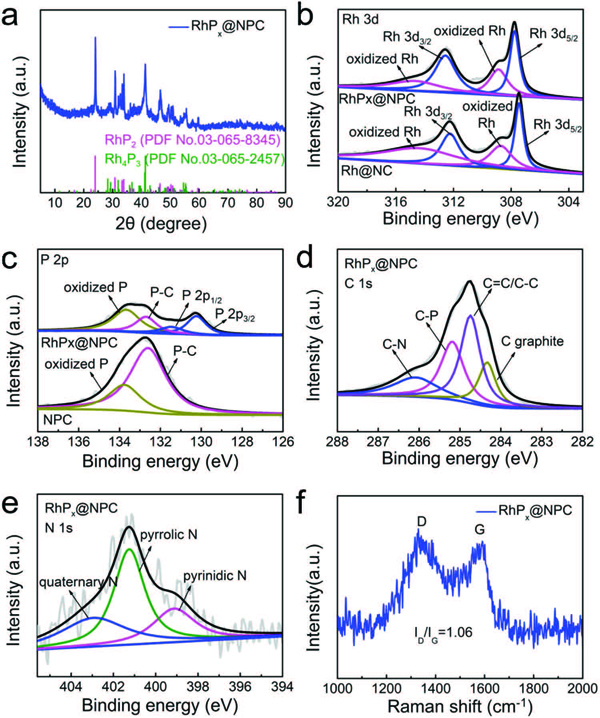 图4 RhPx@NPC纳米壳的XRD和XPS表征