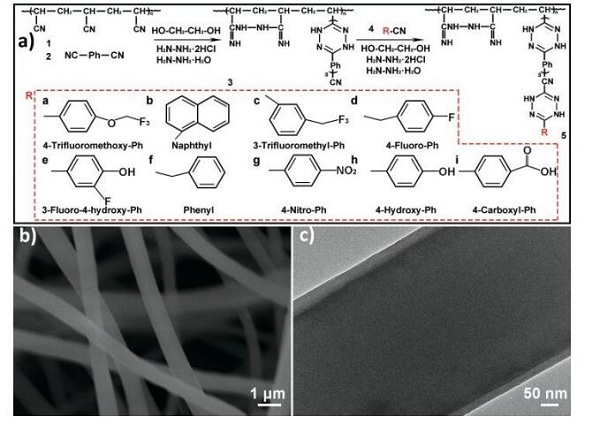 (a) 涂覆不同端基薄膜的PAN纳米纤维的合成路径