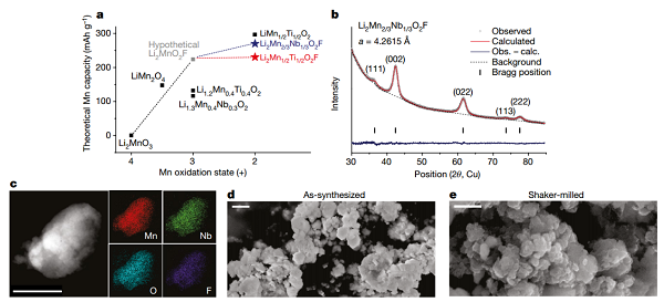 图11 Li2Mn2/3Nb1/3O2F的设计和结构表征