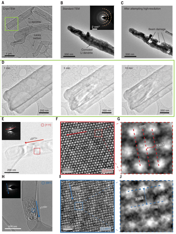 图2 原子级分辨率的Li枝晶冷冻电镜照片