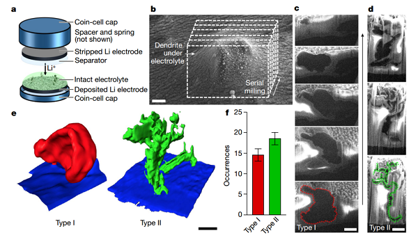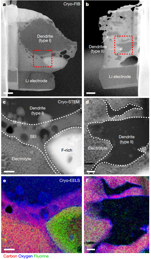 亮点:采用冷冻透射电子显微镜观察锂金属电池的固液界面,研究了其结构和成分,同时确认了两种类型的枝晶的存在,并对其进行了深入探索。