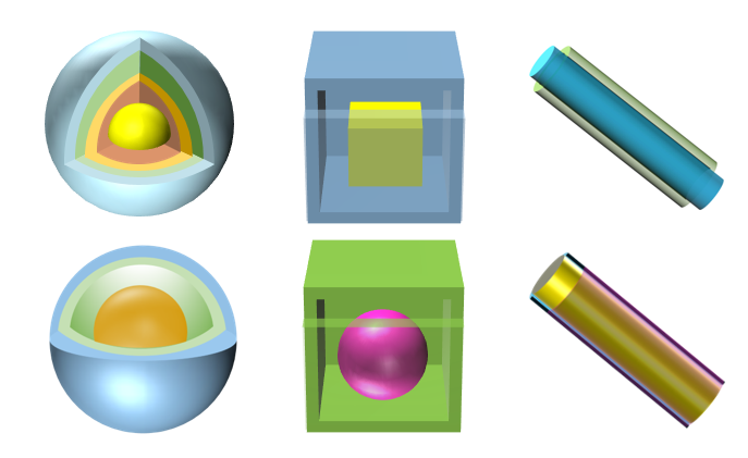 本期教程主要包括核-壳或核-空-壳纳米球,纳米盒子,同轴纳米电缆三种类型,效果如下所示:
