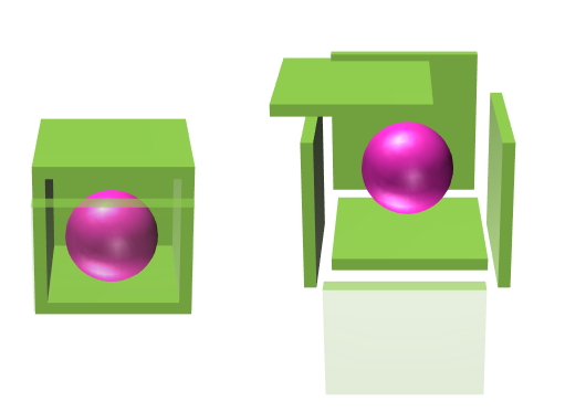 相对于专业的3D模型制作软件,PPT的布尔运算仅限于图形和图形,图片和图形间的运算,同时受困于图层次序的约束,在制备中空结构和切面三维图形时要多运用拼凑的方法。如下图所示: